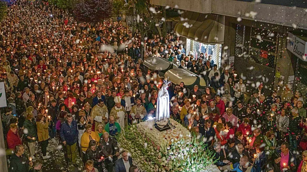 Ya por la tarde, a las 18,00 horas tendrá lugar la misa preparada por los niños de catequesis y una hora más tarde, será la misa radiada. El momento más esperado llegará cuando caiga la noche. A las 22,45 horas arrancará la tradicional procesión y rosario de antorchas, que iluminará las calles de O Couto con las luces de la devoción de los fieles de Fátima. Llegada la medianoche habrá misa en la Catedral antes de regresar con la imagen de la virgen al Santuario.