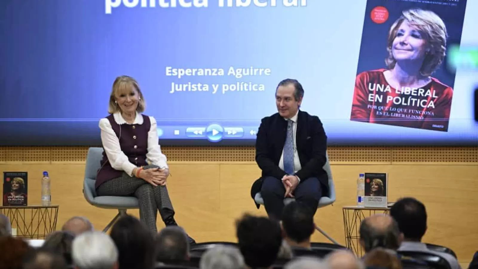 Tras el turno de preguntas y antes de proceder a la firma del libro para todos los asistentes que así lo deseasen, Esperanza Aguirre ha acabado la intervención proclamando: "¡Viva la libertad, carajo! ¡Viva España! ¡Viva el Rey!".