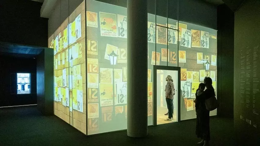 En el recorrido, creado a modo de túnel oscuro con diferentes “momentos de luz” mediante ventanas a los puntos más relevantes de su vida y trayectoria artística y política, se introducen proyecciones holográficas, mapas animados y una experiencia inmersiva en un gran cubo de papel de cuatro metros de altura con tecnología de videomapping y sonido cadráfonico.