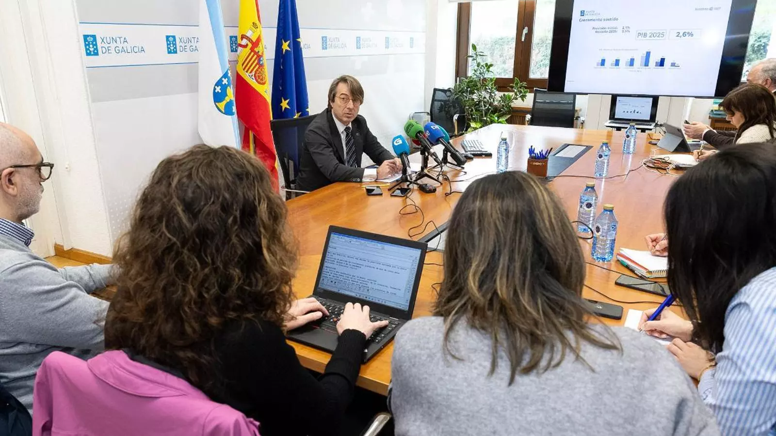 La economía gallega creció un 2,6% en el año 2025, por encima de las previsiones. Así lo explicó el conselleiro de Facenda e Administración Pública, Miguel Corgos, en una rueda de prensa en la que hizo una valoración de los datos de la contabilidad trimestral publicados ayer por el Instituto Gallego de Estadística (IGE).