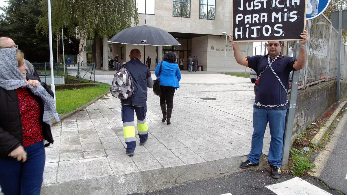 Un hombre se encadenó ayer en el acceso a los juzgados de Vigo para reclamar la custodia de sus cinco hijos, de entre 8 y 13 años, y que permanecen ingresados en un centro religioso donde, según asegura el padre, son víctimas de presuntos malos tratos. Pablo Enrique G.G. explicó que la custodia le fue retirada cuando su exmujer ingresó en la cárcel tras incumplir una orden de alejamiento y denunció que la maltrataba y también a sus hijos.