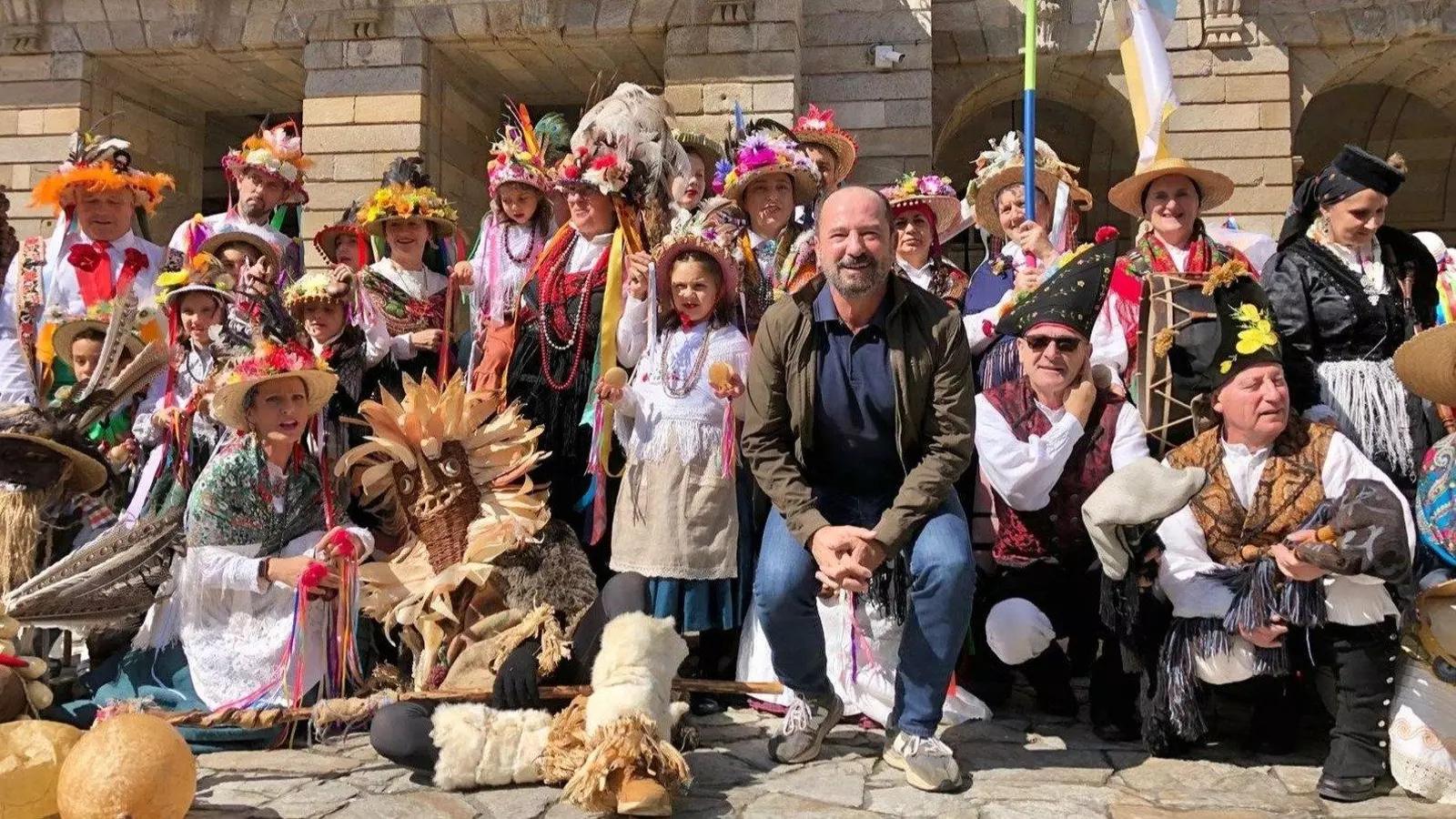 El director de Turismo de Galicia, Xosé Merelles, ha asistido a la salida desde la Praza do Obradoiro, en Santiago de Compostela, y ha animado a que visitantes y turistas vuelvan durante el invierno "para conocer recursos que nos hacen únicos como destino, como son nuestros carnavales tradicionales".