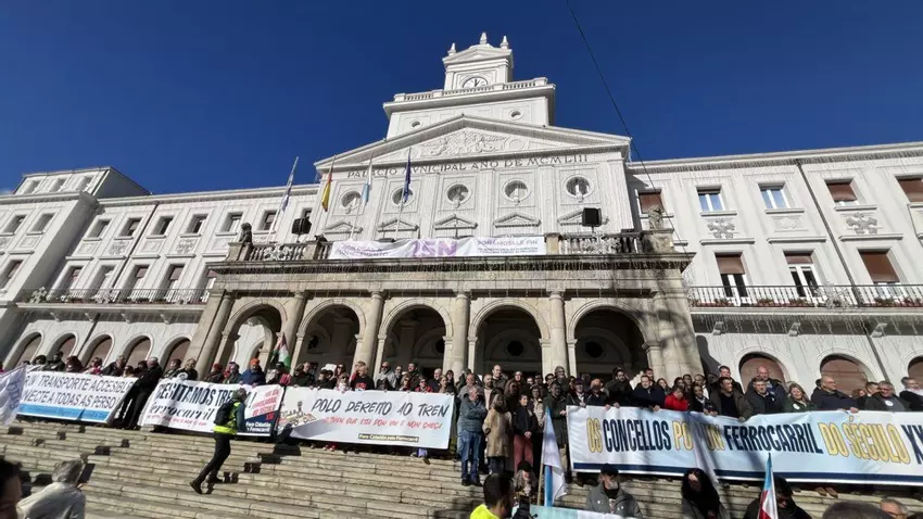 Una multitudinaria manifestación celebrada en Ferrol reunió este domingo al mediodía a miles de personas con el fin de reclamar un servicio ferroviario “digno”, frente a lo que la sociedad civil y política consideraba una “discriminación” histórica hacia las comarcas de Ferrolterra, Eume y Ortegal en las políticas de modernización del transporte.