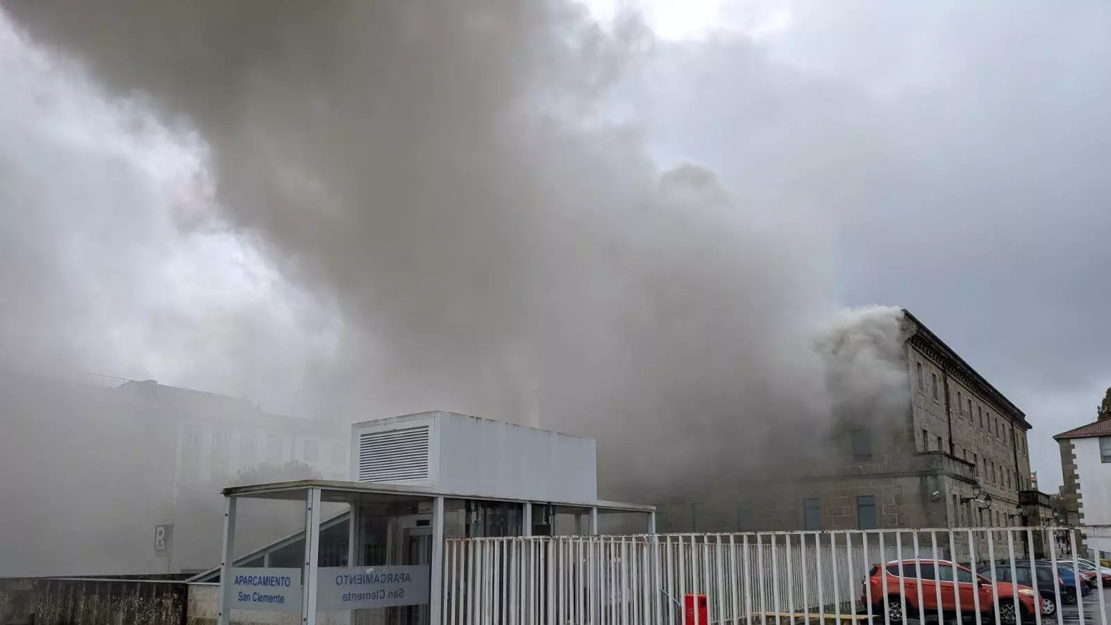 Un incendio originado en la comisaría de la Policía Nacional de Santiago, localizado en una zona de la planta inferior donde había neumáticos almacenados, ha obligado a desalojar el edificio de la avenida de Rodrigo de Padrón y ha causado una intensa nube de humo que se ha extendido hacia otros lugares de la ciudad.