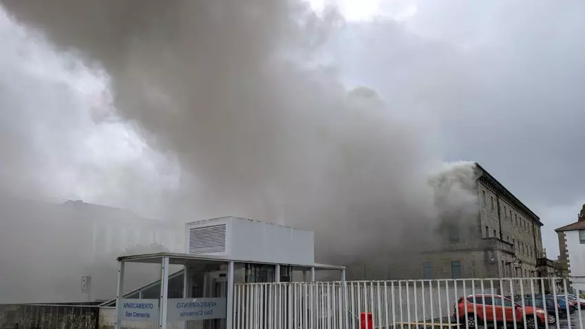 Una zona de la planta interior de la comisaría de la Policía Nacional de Santiago, donde había neumáticos almacenados, ha registrado un incendio que ha obligado a desalojar el edificio y ha causado una intensa nube de humo que se ha extendido hacia otros lugares de la ciudad.