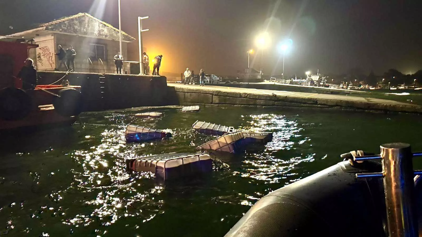 Poco después, efectivos del Servizo Municipal de Emerxencias confirmaron que la embarcación había escorado mientras cargaba mercancías y que acabó volcando. Los tripulantes lograron pasar a la batea sin sufrir daños personales y el bateeiro terminó por hundirse del todo.