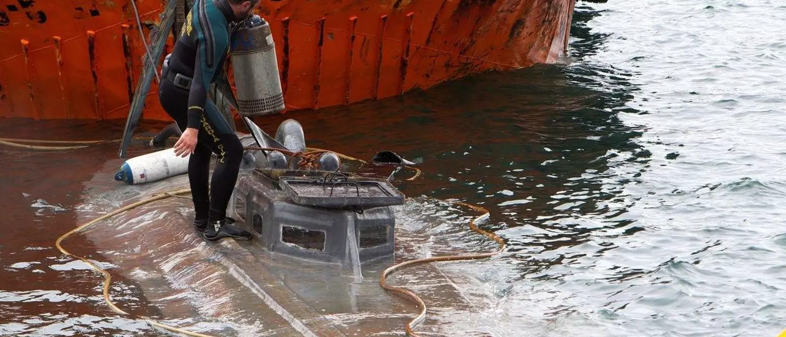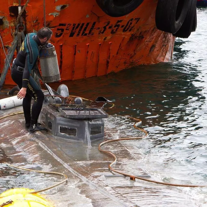 El narcosubmarino llega al puerto de Cangas... y se hunde