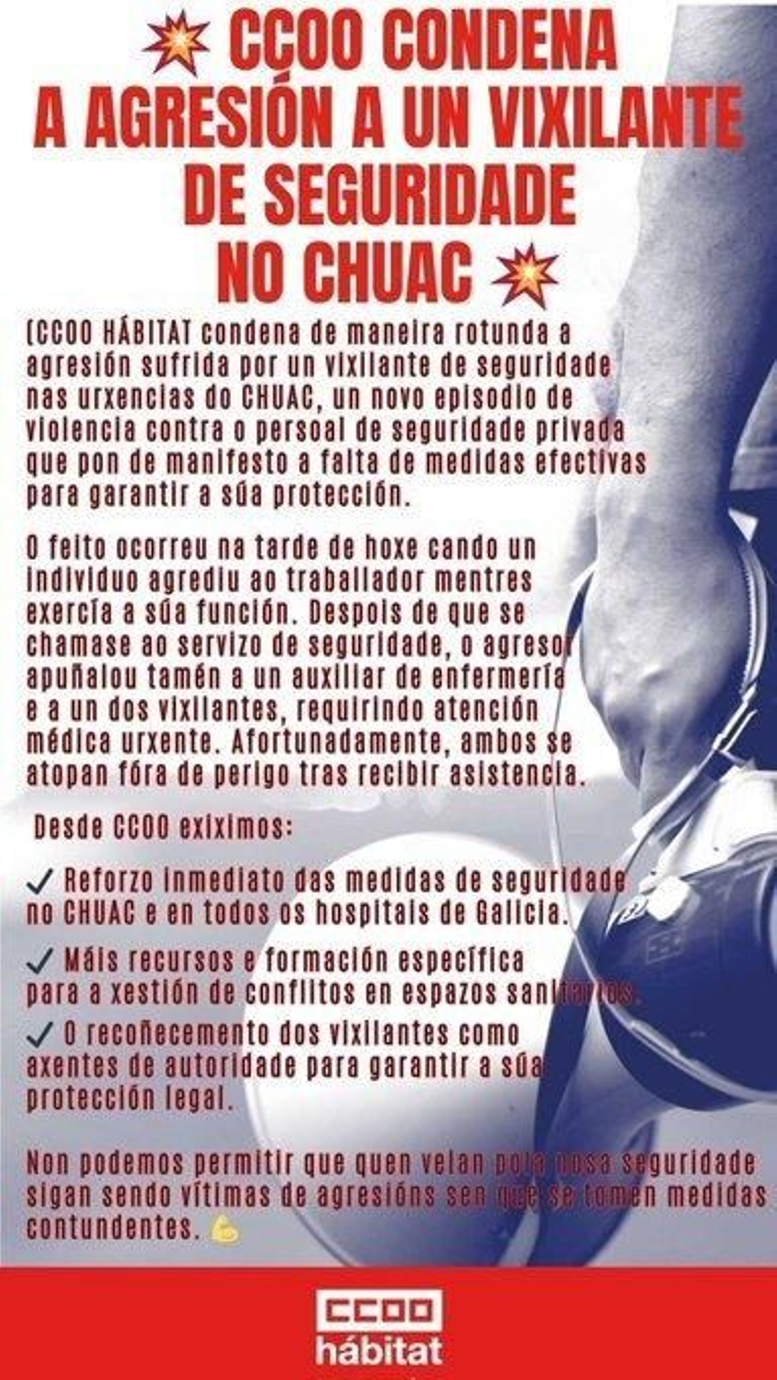 El sindicato Comisiones Obreras ha compartido un comunicado condenado la agresión.