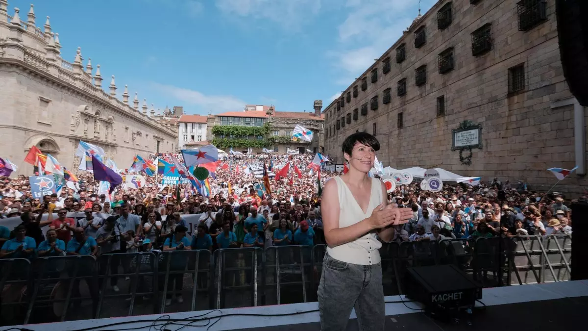 "El BNG no nació para ser una corriente de opinión, nació para ser la fuerza mayoritaria". Con esta proclama la líder del Bloque, Ana Pontón, sintetizó parte del discurso pronunciado este Día da Patria Galega ante miles de personas en la compostelana Praza da Quintana, último también antes de los proceso electorales del próximo año en los que la dirigente ha puesto la mirada: "Quiero que llevéis un mensaje claro de este 25: vamos a por todas, sin límites, porque no queremos ponerle límites al futuro de Galicia".