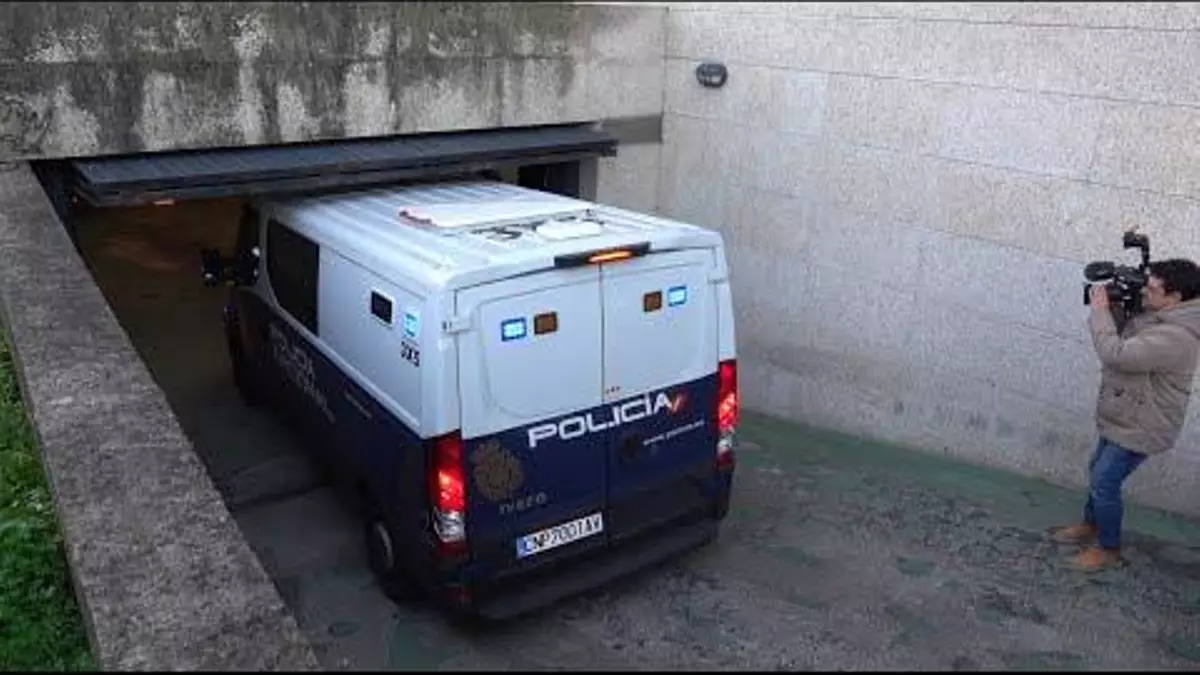 El sospechoso, profesor en un instituto, llegó al edificio judicial de la calle Lalín, en la ciudad olívica, sobre las 8,45 horas, en un vehículo rotulado de la Guardia Civil, acompañado por dos agentes, y escoltado por otro coche de la Policía Judicial.