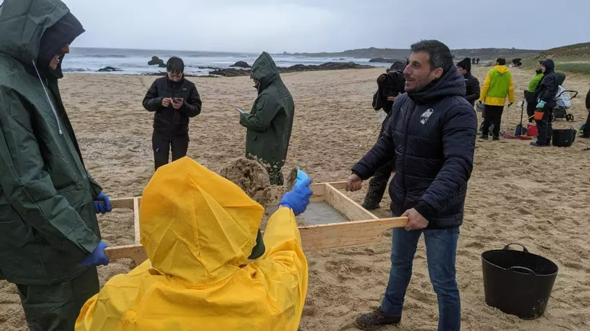 Rodrigo Fresco é o veciño de Corrubedo que deu o primeiro aviso do fatídico verquido de sacos de "pellets" e a súa chegada a unha das praias máis bonitas e salvaxes de Galicia. Hoxe, un mes despois, participa nas tarefas de limpeza no mesmo areal. Esta vez coa axuda da veciñanza, voluntarios e técnicos