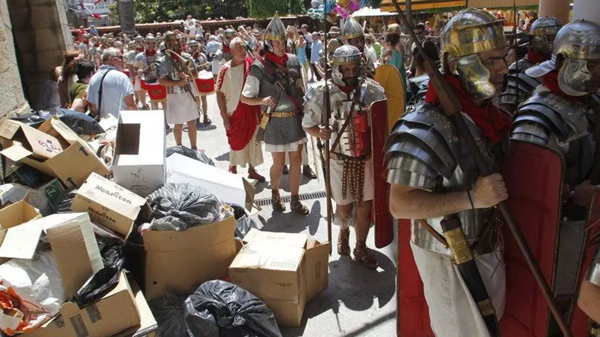 Paralelamente, patricios, gladiadores, celtas, romanos y castrexos celebran el Arde Lucus en una ciudad que este fin de semana retrocedió en la máquina del tiempo más de dos mil años, pero cuya normalidad la mantiene inmersa en una realidad "actual", la huelga de basura que dura ya cinco días. Miles de personas conviven este fin de semana por las calles de la ciudad, con romanos y castrenses, para evocar la fundación de la urbe en el año 12 antes de Cristo, la única en el mundo con una muralla romana conservada íntegramente y que se puede recorrer.