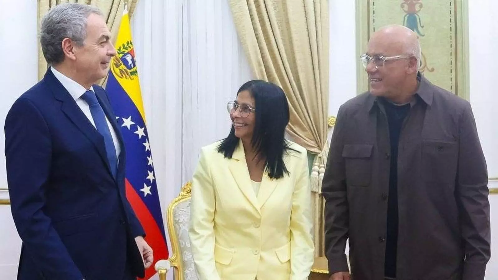 La presidenta encargada de Venezuela, Delcy Rodríguez, ha recibido al expresidente español José Luis Rodríguez Zapatero en el Palacio de Miraflores, en compañía de su hermano Jorge, presidente del Parlamento de la república bolivariana.