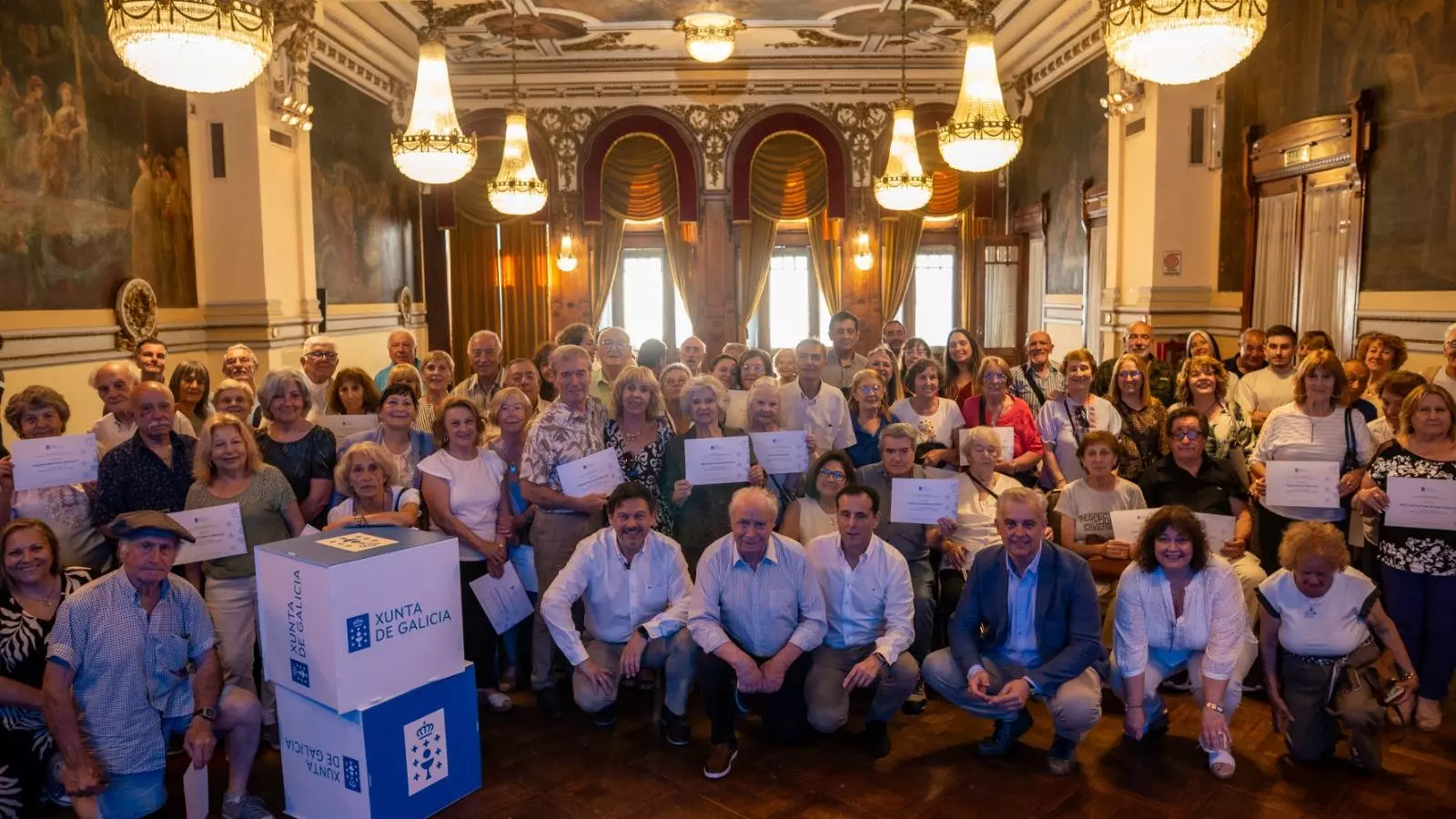 Más de 140 integrantes de la colectividad gallega en Argentina recibieron este jueves en Buenos Aires las compostelas y diplomas correspondientes a los programas "Reencontros con Galicia", "Conecta co Voluntariado" y "Conecta con Galicia no Camiño". El secretario xeral da Emigración, Antonio Rodríguez Miranda, presidió el acto acompañado por el delegado de la Xunta en el país, Alejandro López Dobarro.