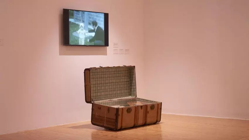 Otro de los espacios adopta la forma de una tienda de souvenirs, desde la que se contrapone la imagen turística de la España de los años sesenta y setenta con relatos audiovisuales sobre el destierro, las comunidades exiliadas y los regresos marcados por la dificultad. La siguiente sala, aparentemente vacía, alberga pequeños armarios que conservan objetos ocultos durante el franquismo, como fotografías cosidas, cartas escritas en telas o medallas escondidas.
