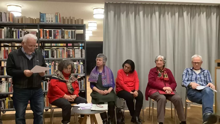 Liderados por Adriana Olmos, Los Escribidores presentaron en Zúrich una cuidada selección de sus trabajos literarios ante un numeroso y entusiasta público