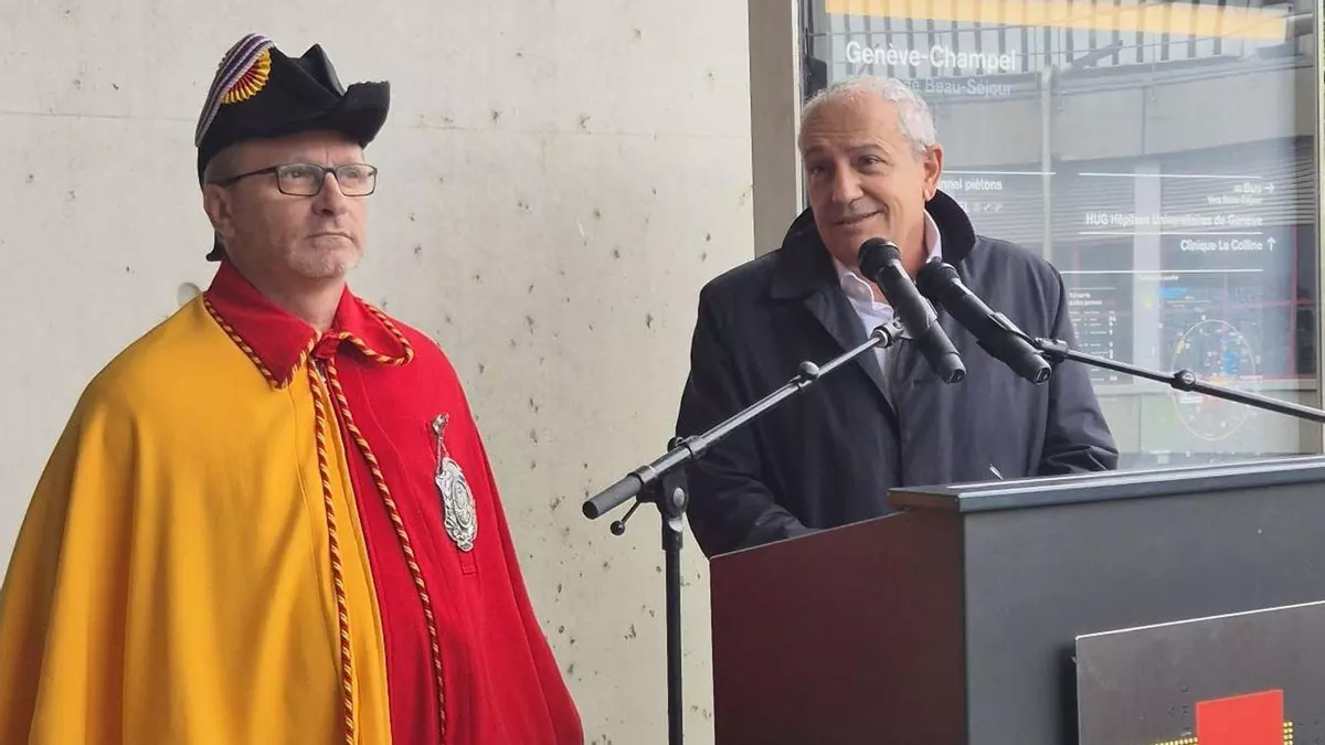 El evento contó con la participación del alcalde de Ginebra, el cormelán Alfonso Gómez, y del Cónsul General de España en Ginebra, Luis Fernández-Cid, quienes tuvieron el honor de descubrir la placa.