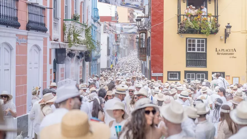 La afluencia de público se vio reforzada por la escala en el puerto palmero de dos cruceros transatlánticos, el Mein Schiff Relax y el Spirit of Discovery, cuyos pasajeros y tripulantes se sumaron desde primera hora a la marea blanca que inundó las calles de la capital.