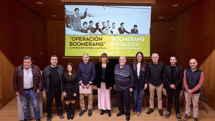 La Instituto Navarro de la Memoria ha presentado la exposición virtual sobre la ‘Operación Boomerang’, el nombre con el que se conoció la emigración navarra a Australia en las décadas de 1950 y 1960. El acto, celebrado en la sala Gola de Baluarte y presidido por la vicepresidenta segunda del Gobierno foral, Ana Ollo, reunió a más de medio centenar de personas, entre ellas miembros de la Asociación Navarra Boomerang Australia Elkartea.