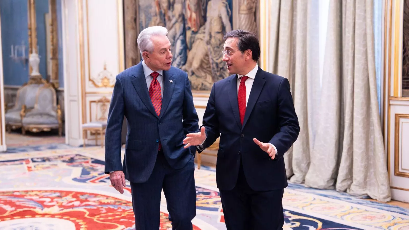 La ceremonia contará con la presencia del ministro de Asuntos Exteriores, Unión Europea y Cooperación, José Manuel Albares, que ya mantuvo un encuentro previo con el diplomático tras su llegada a la capital. Durante esa reunión, celebrada en vísperas del acto en el Palacio Real, Albares trasladó al embajador sus mejores deseos de éxito en el desempeño de su responsabilidad al frente de la legación estadounidense.