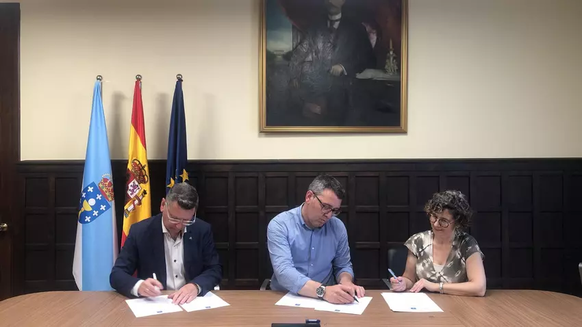 En el acto de firma participaron el alcalde de Ribadeo, Daniel Vega; el coordinador institucional de ABANCA en Lugo, Carlos Teijeiro; y la coordinadora institucional de Afundación en Ourense y Lugo, Beatriz Fernández-Anguiano.