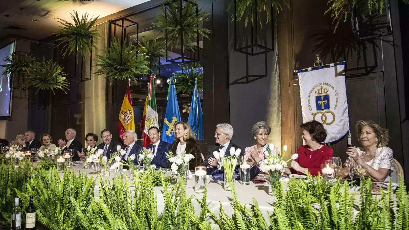 A la mesa se sentó la delegación asturiana que encabezan el consejero de Presidencia, Guillermo Martínez y el de Industrisa y Turismo, Isaac Pola, también el embajador de España, el ex-rector de la Universidad Nacional Autónoma de México, y muchos rostros conocidos y reconocidos, como los empresarios Antonio Suárez o Juan Antonio Pérez Simón hasta completar la lista de 697 invitados.