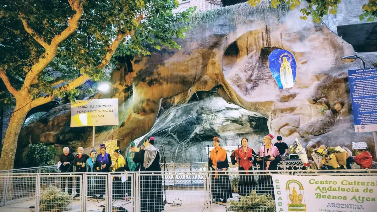La tarde del pasado domingo, 7 de diciembre, dejó una estampa inolvidable en Santos Lugares. En el Santuario Nuestra Señora de Lourdes, la gruta se transformó en un rincón de Andalucía gracias al encuentro “Villancicos en la Gruta de Lourdes”, organizado por el Centro Cultural Andalucía de Buenos Aires (Cecaba). Mucho antes de las 19.30, vecinos, familias y amigos de la institución ya colmaban el espacio, deseosos de compartir una tradición que cada año despierta nostalgia y celebración.