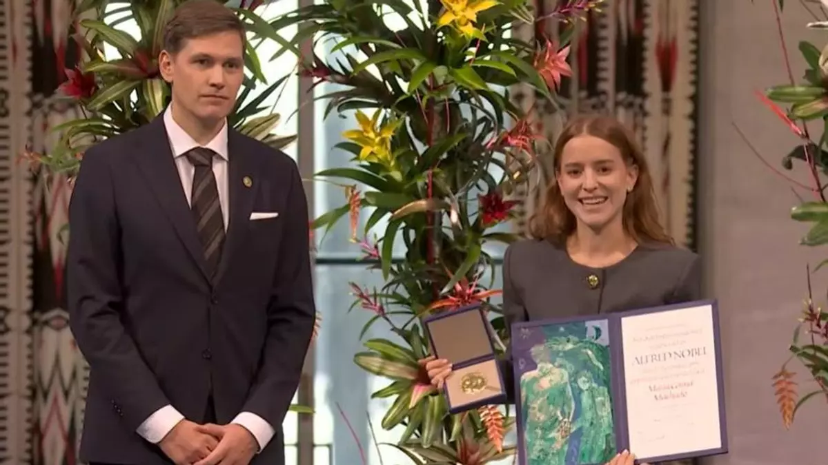 La hija de María Corina Machado recibe el Nobel de la Paz en su nombre