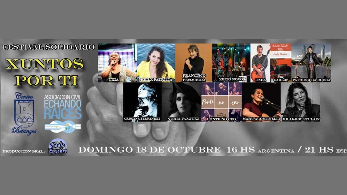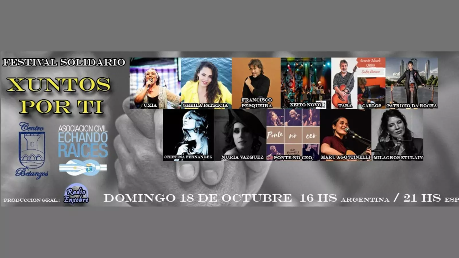 El Festival Solidario “Xuntos Por Ti” está incluido dentro del marco de la semana del Día de la diversidad cultural, y se celebrará el domingo 18 de Octubre 16 hs (Argentina) - 21hs (España). Participarán de este festival artistas nacionales e internacionales