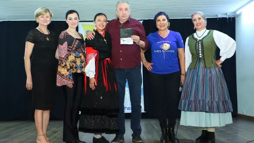 La Cónsul Honorario de España en Curitiba, Blanca Hernando Barco, se dirigió a la comunidad gallega recordando la tercera ola migratoria que llegó Curitiba, en los años 50 y que trajo la mayoría de gallegos que ayudaron a construir el Centro Español. “Hoy nos sentimos unidos por los recuerdos, las imágenes y la música. Nos encontramos aquí con la memoria de varias generaciones de emigrantes, ¡emigrantes como Doña Elsa y D. Delmiro que nos enorgullecen como españoles que ayudaron construir esta ciudad! Felicito a todos los gallegos en el Día de la Comunidad Gallega. Estos emigrantes son la prueba de que valió la pena tanto esfuerzo.”