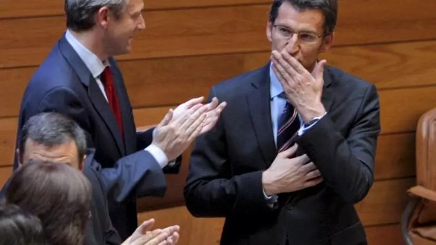En medio de la ovación de los diputados ??populares?? y de los invitados al hemiciclo, el presidente de la Xunta en funciones, el socialista Emilio Pérez Touriño, se levantó de su escaño para dirigirse a felicitar, con un apretón de manos, a quien lo sucederá al frente del Ejecutivo gallego.