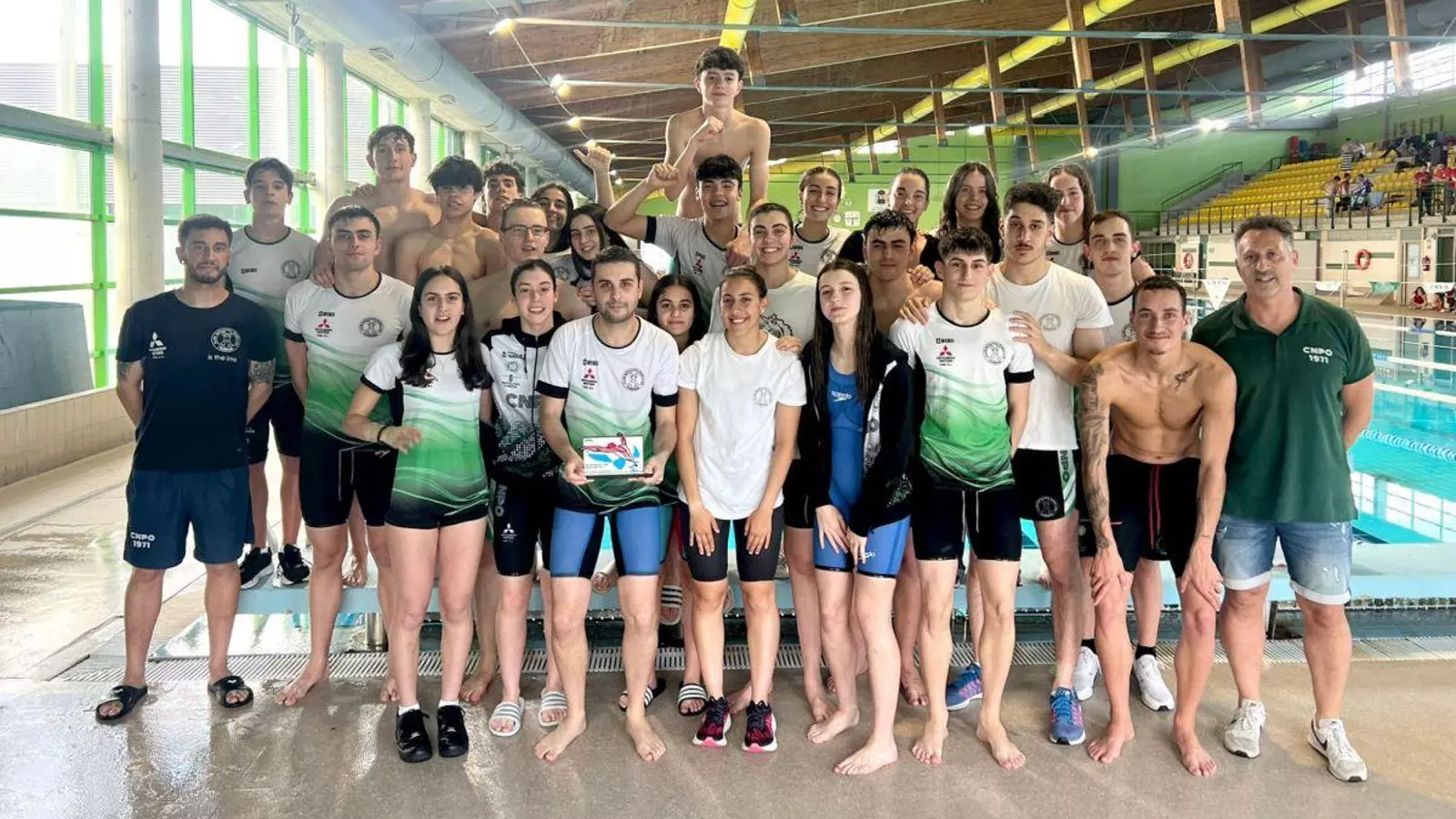 Marcando el paso desde la primera jornada y llevando su dominio hasta la última. Así fue la temporada del Club Natación Pabellón en la Primera División autonómica. Todo para conseguir imponerse en la clasificación general y conseguir el ascenso que les permite recuperar su sitio natural en la División de Honor, la máxima categoría gallega. Los y las pabellonistas mostraron su buen hacer, se colocaron el cartel de favoritos desde el arranque y certificaron el éxito que se venía fraguando en la última competición, celebrada este pasado fin de semana en casa, en la piscina Rosario Dueñas.