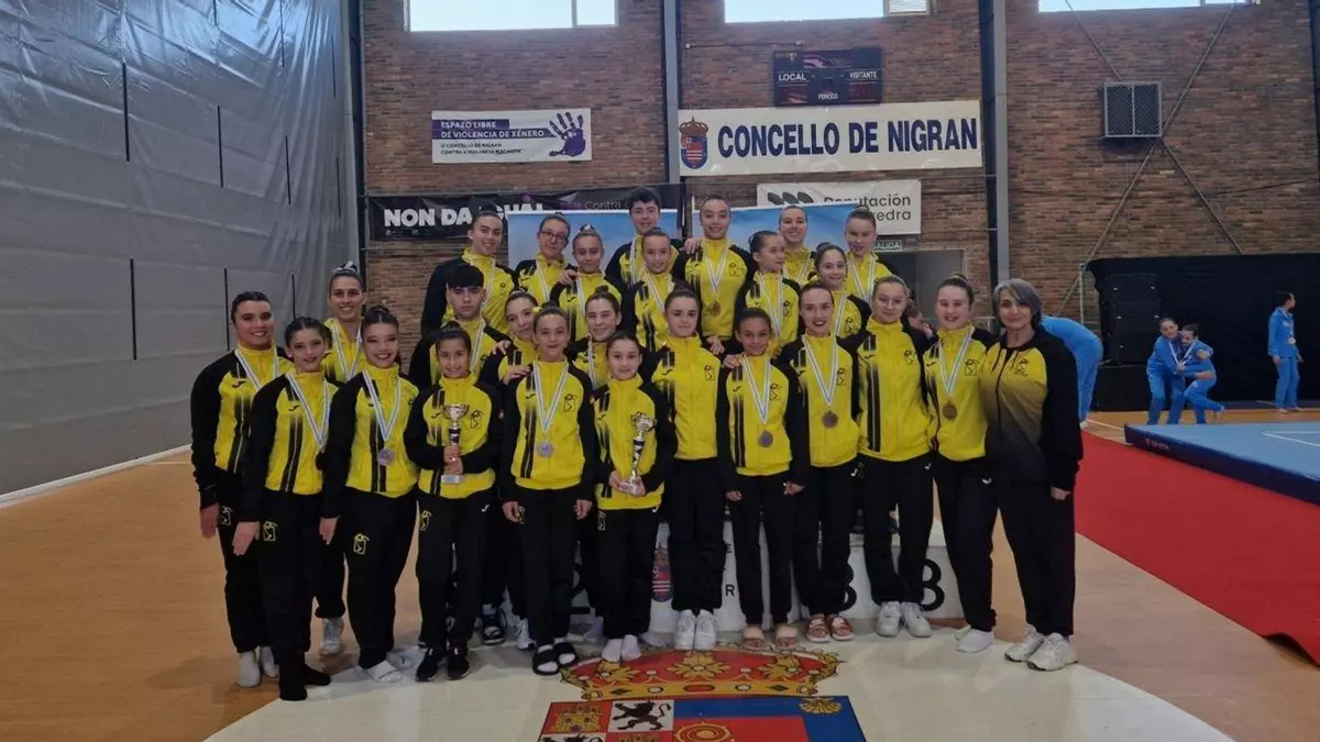 El Ximnasia Burgas lideró el Campeonato Gallego de gimnasia acrobática que se desarrolló en el polideportivo de Nigrán. El club ourensano, que acudió a esta cita autonómica con 32 gimnastas repartidos en tres equipos, logró 12 podios, con cuatro oros, cuatro medallas de plata y otras tantas de bronce, se proclamó campeón por equipos base en las categorías sénior y júnior, además de finalizar tercero en la categoría infantil.