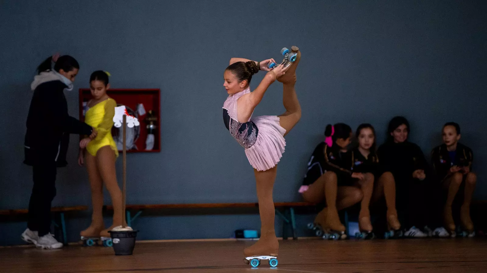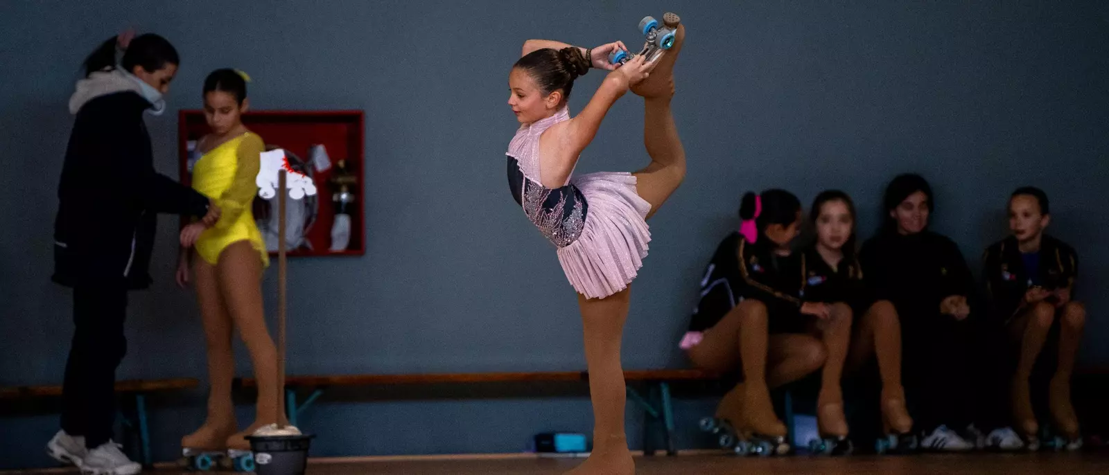 Muy atentas algunas patinadoras a lo que realizaba su rival durante su presentación.