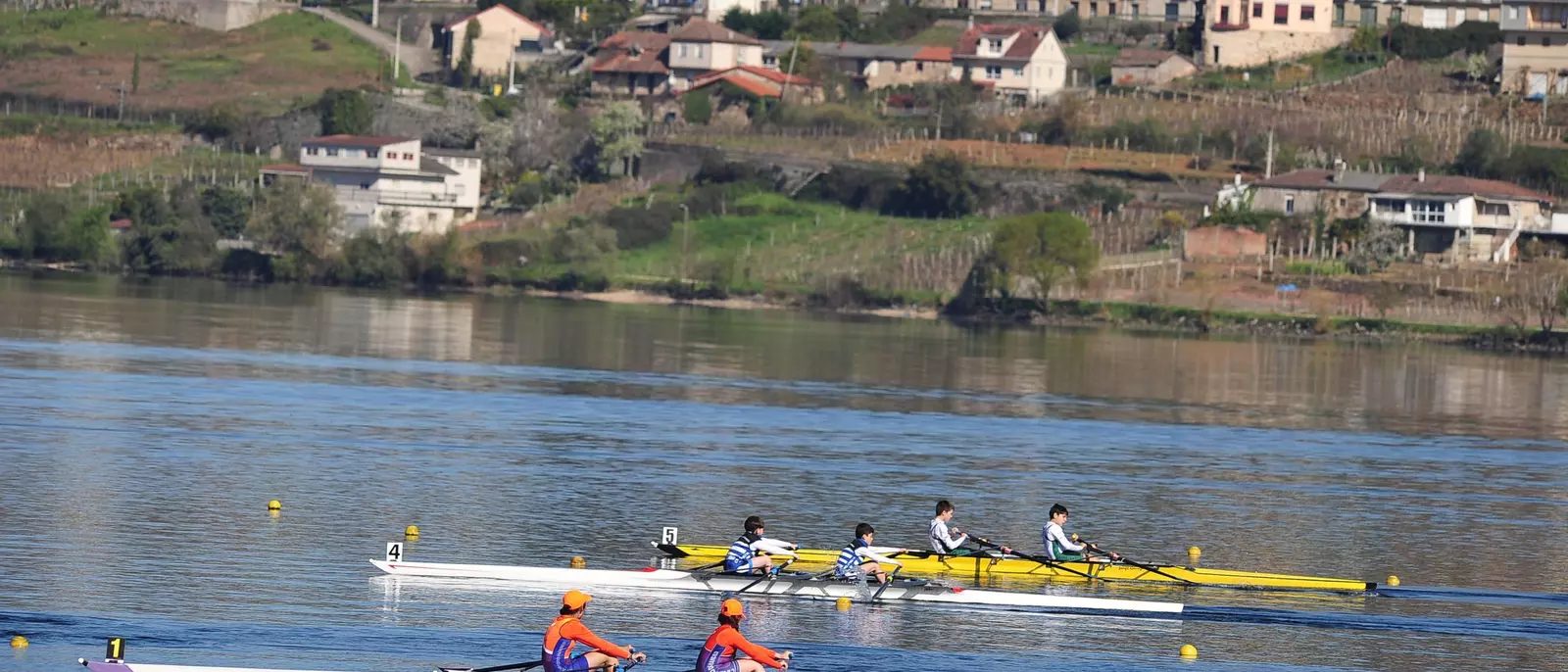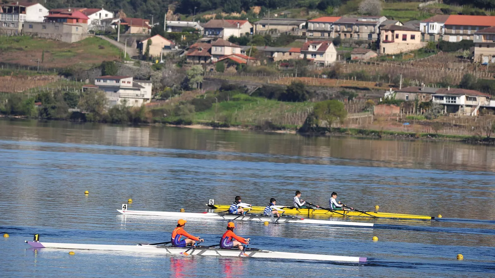 Plena competición ante la antenta mirada de los entrenadores. Liga Gallega de Remo