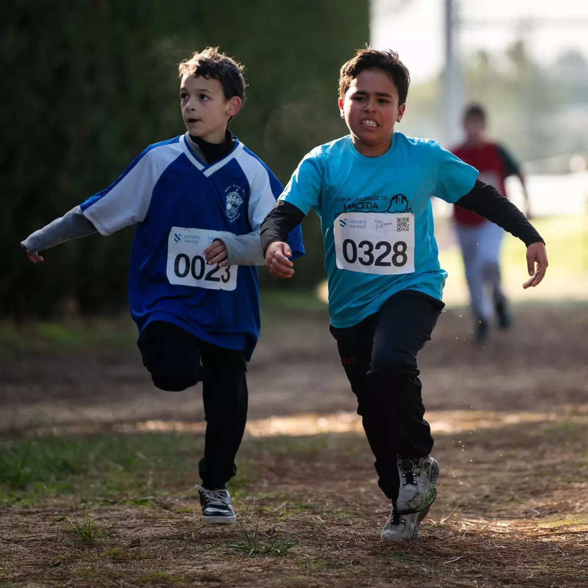 Hugo, Ian y Fabio antes de competir en Ribadavia durante la Fase Comarcal del Cross Escolar.