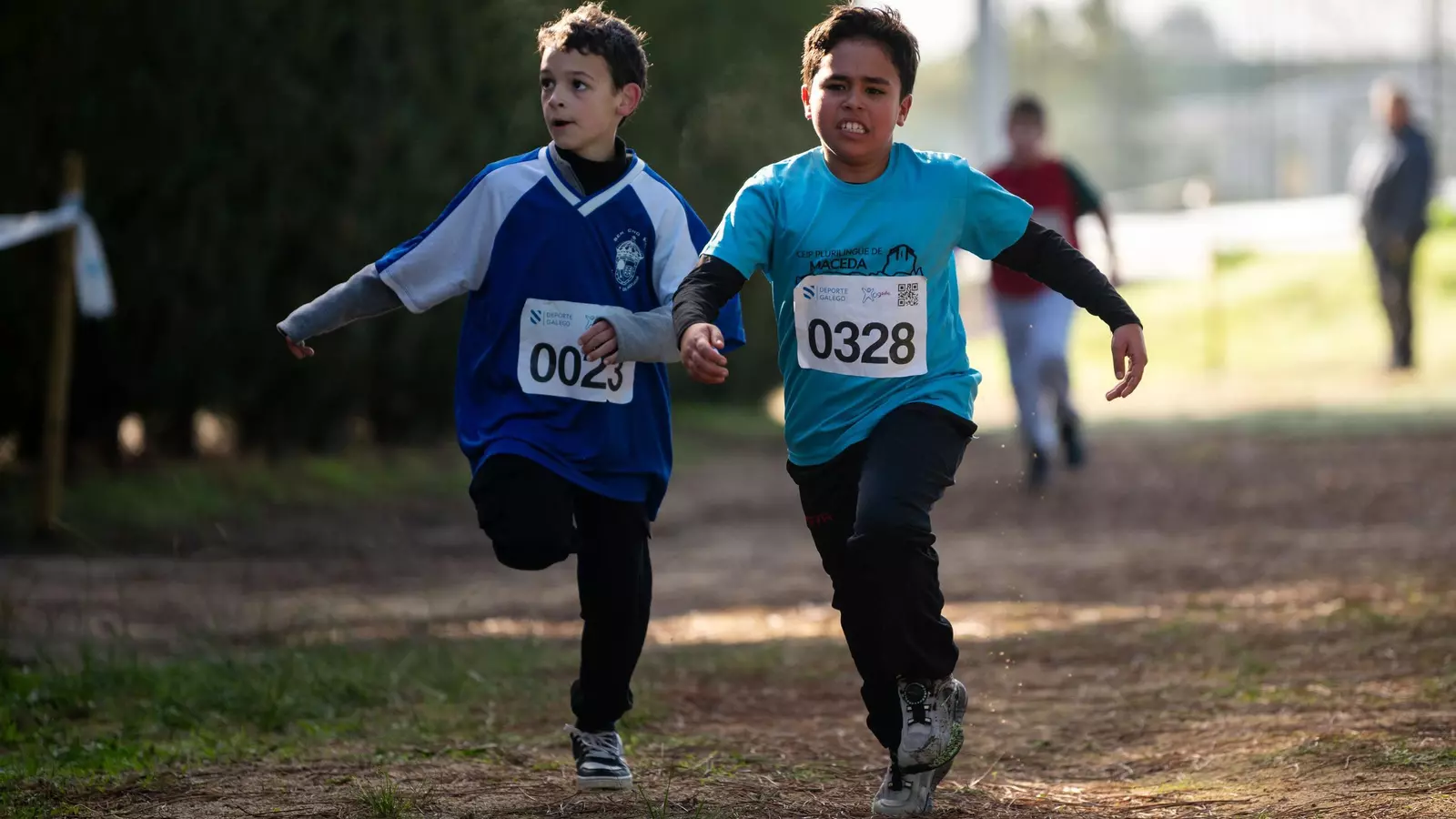 El esfuerzo de los últimos metros se hace presente en los rostros de los participantes del Cross Escolar en Pereiro de Aguiar.