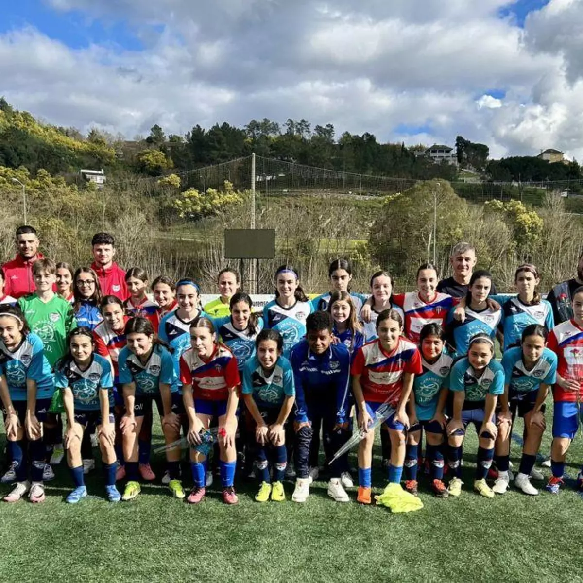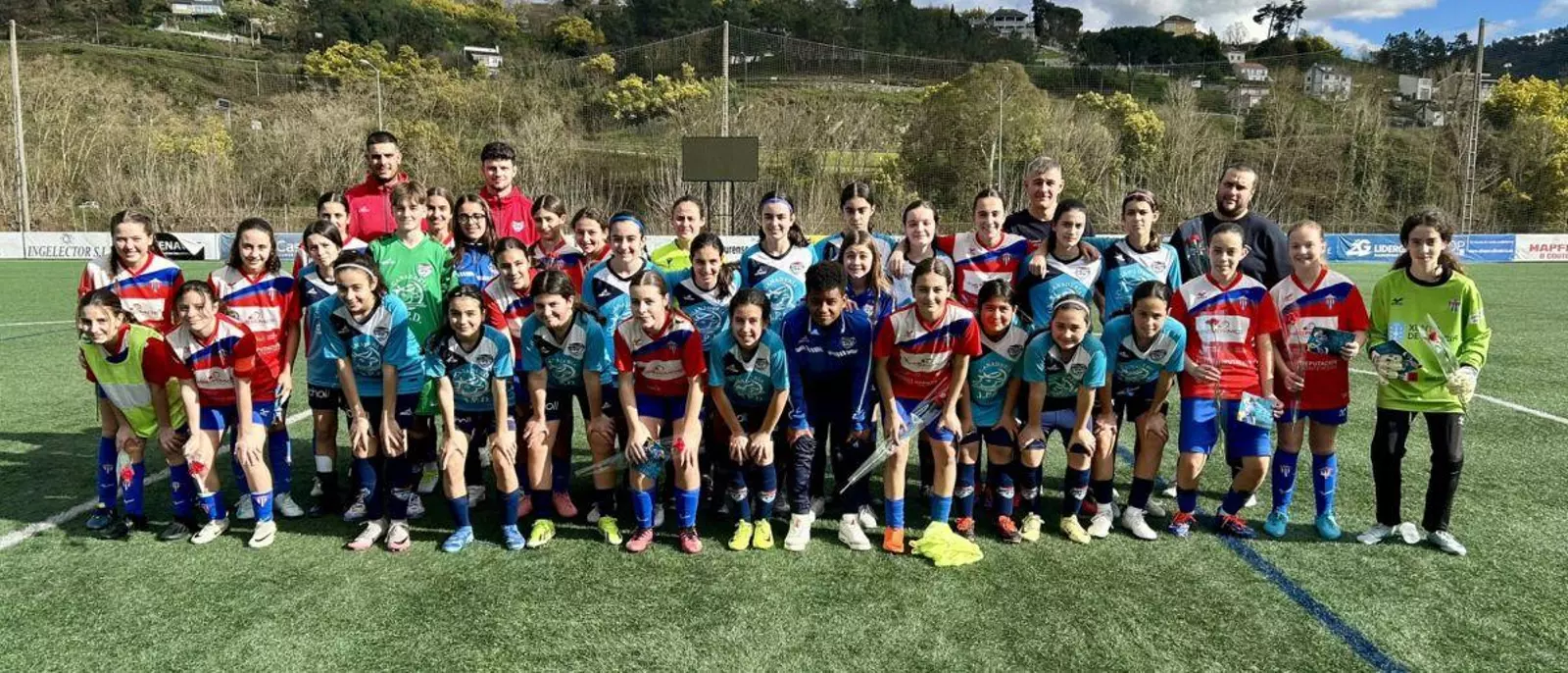 Aprovechando que era el 188 aniversario del nacimiento de Rosalía de Castro, el club pontino repartió rosas y un libro entre las participantes para completar una entretenida jornada futbolera.