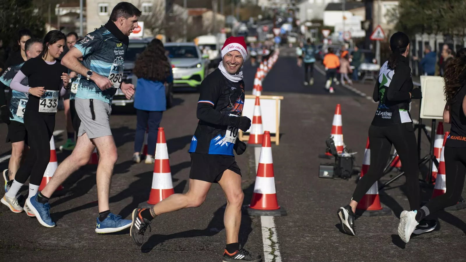Papá Noel espera a los ganadores en la meta.