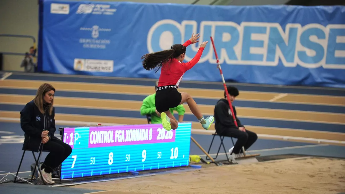 Desde el Sanysec Ourense Atletismo, Miguel Carbajales se hizo con el primer puesto en el concurso de salto con pértiga, gracias a un mejor intento de 4,50. Su compañero Iago Saco se colgó la plata en los 200 metros y se quedó a las puertas del podio en los 400. Un doblete que sí consiguió su compañera África Gómez, que venció en los 60 metros y terminó segunda en los 200. Además, Aitana Capeáns se colgó la plata en lanzamiento de peso, al igual que Rebeca Fernández en pértiga.
