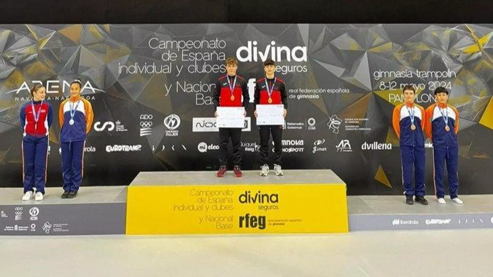 Desde el lado pabellonista, en nivel base, Benjamín Celis (cadete) logró el oro en trampolín y en doble minitramp (DMT), mientras que Aleix Galán (alevín) se colgó la plata en trampolín. En niveles, oro para Daniel Imray y Mateo Rodríguez (júnior) en sincronismo. Fabio González (alevín) oro en DMT y plata en trampolín, Diego Rodríguez (infantil) oro en trampolín, Íker García (infantil) plata en trampolín, Noa Puente-Dodd bronce en trampolín sénior, Mateo Rodríguez oro en trampolín júnior, el equipo sub-15 femenino oro en trampolín y el masculino el bronce, mientras que el absoluto masculino se colgó la plata en DMT y el bronce en trampolín.