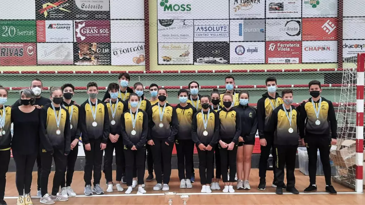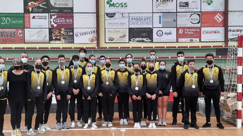 Lograron la plata en doble minitramp: Iván Estévez, Paula Touza, Guillermo Alonso y Samuel Castro. Bronces para Adrián Soliño, Ainara Rial y Diego López, Clara Rodríguez y Marta Castro (doble minitramp). Adrián Soliño (tumbling) y Melania Rodríguez (trampolín). En base, oros de Olivia Pampín en base 1 doble minitramp y tumbling, Leo Touza en base 1 trampolin y las platas de Inés Serra en base 1 doble minitramp y Sara Castro en base 1 trampolín.