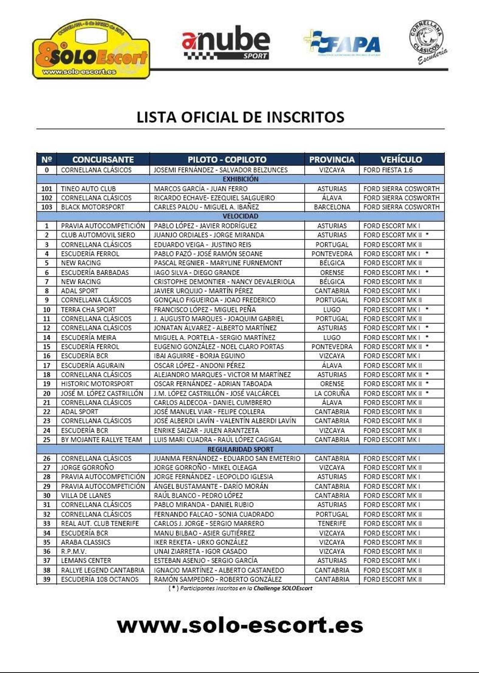 La organización de la octava edición del Rally Solo Escort publicó durante la mañana del jueves 4 de marzo la lista de inscritos de la prueba, entre los que destaca la presencia de dos equipos ourensanos formados por Iago Silva y Diego Grande y Óscar Fidalgo y Adrián Taboada.