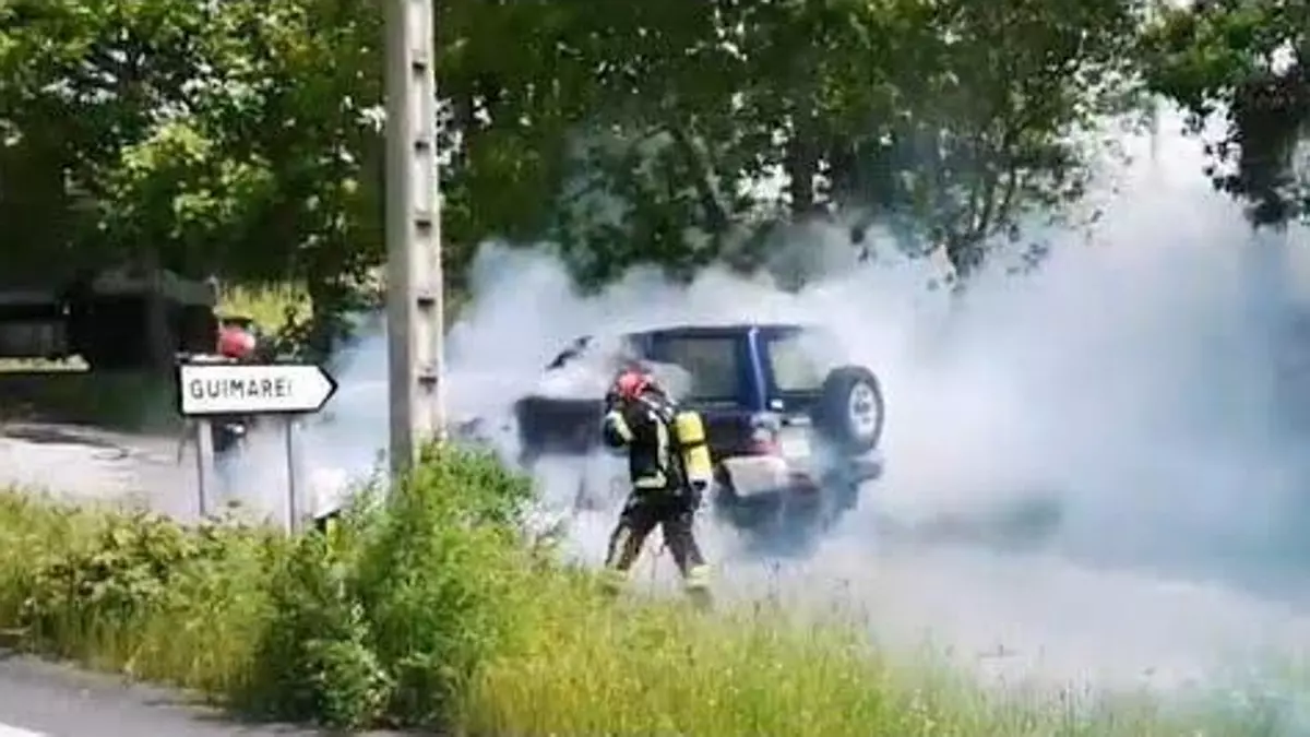 Un vehículo ardió en la N-525 a su paso por Monterrei sin causar heridos, aunque quedó casi completamente calcinado.