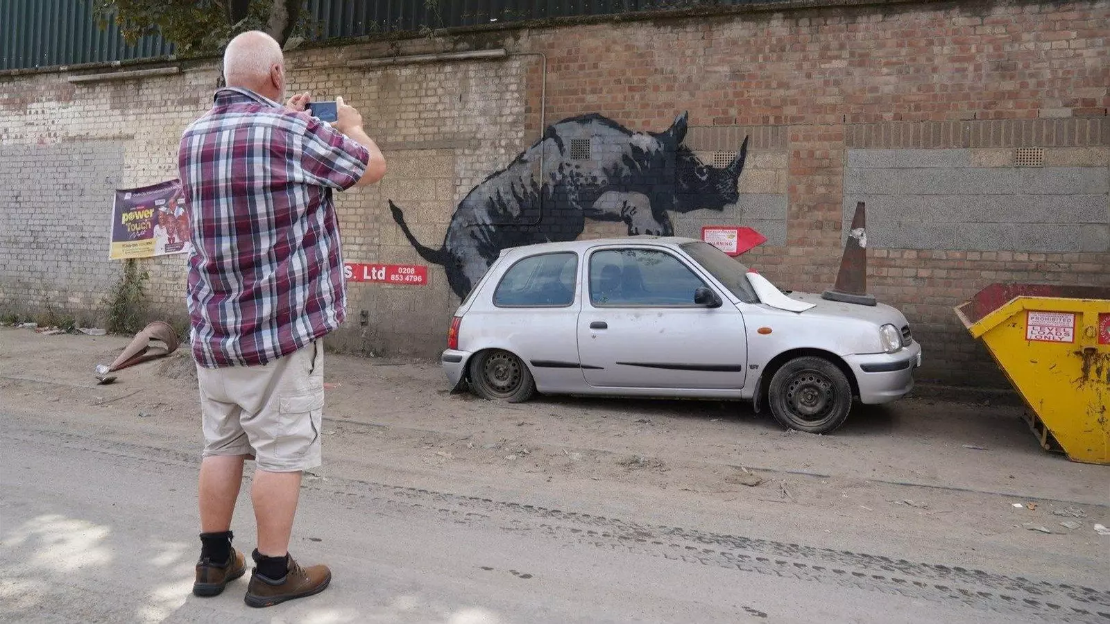 Los murales, que él mismo va publicando en su perfil de Instagram, ascienden a ocho y el último ha sido la figura de un rinoceronte en una pared que simula escalar un coche aparcado justo delante. Medios británicos lo han ubicado en la calle Westmoor del barrio de Charlton, al sureste de Londres.