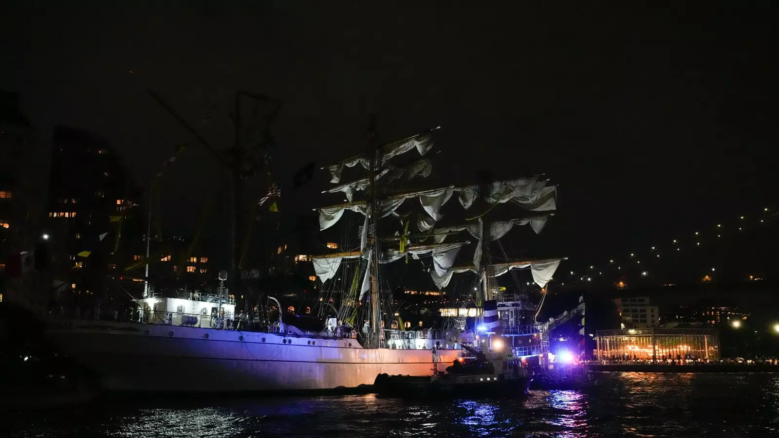 Las imágenes del accidente difundidas en redes sociales muestran a varios tripulantes subidos en las partes más altas de los mástiles del navío. Han sido estos palos los que al tratar de cruzar por debajo del puente se han partido debido a la colisión con los marineros encima.