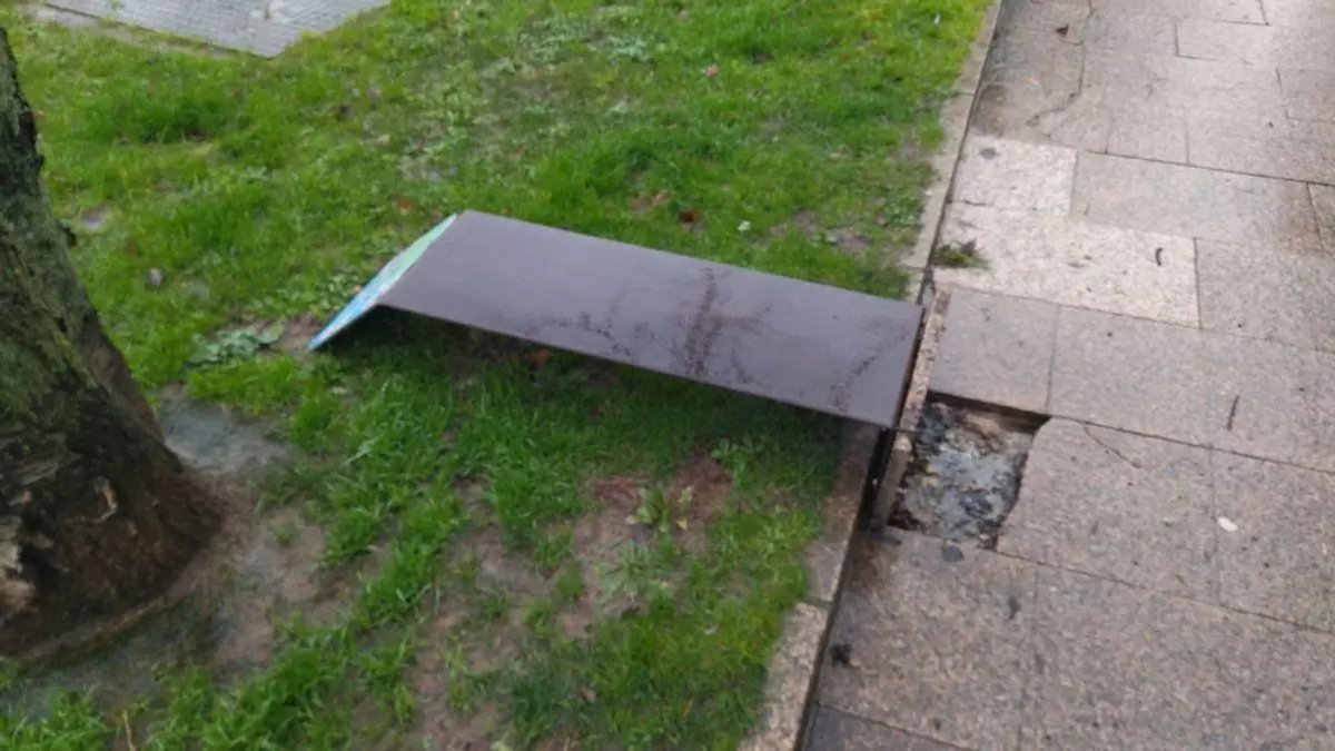 Hoy en el Quen cho dixo, la imagen de un panel metálico caído sobre el malecón de O Barco