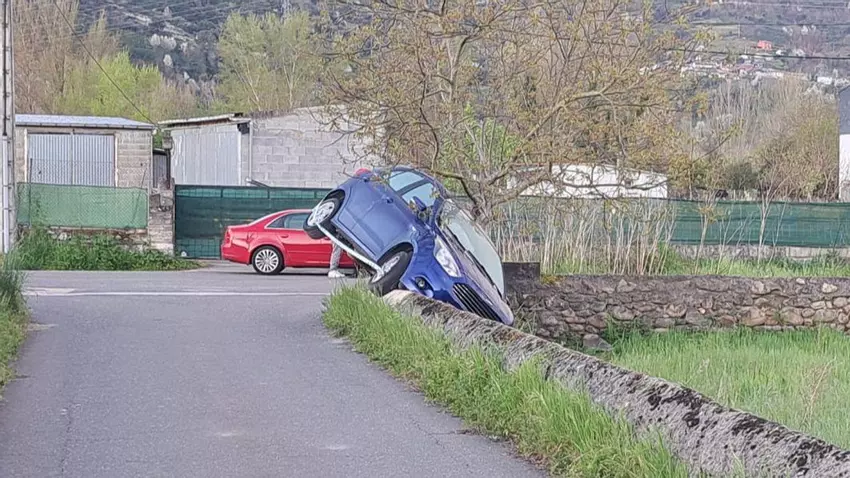 Un aparatoso accidente de tráfico se ha saldado con un coche envorcado sobre un muro. Sucedió alrededor de las 2:00 horas de la madrugada de este jueves, en la Rúa das Areas, de O Barco de Valdeorras.