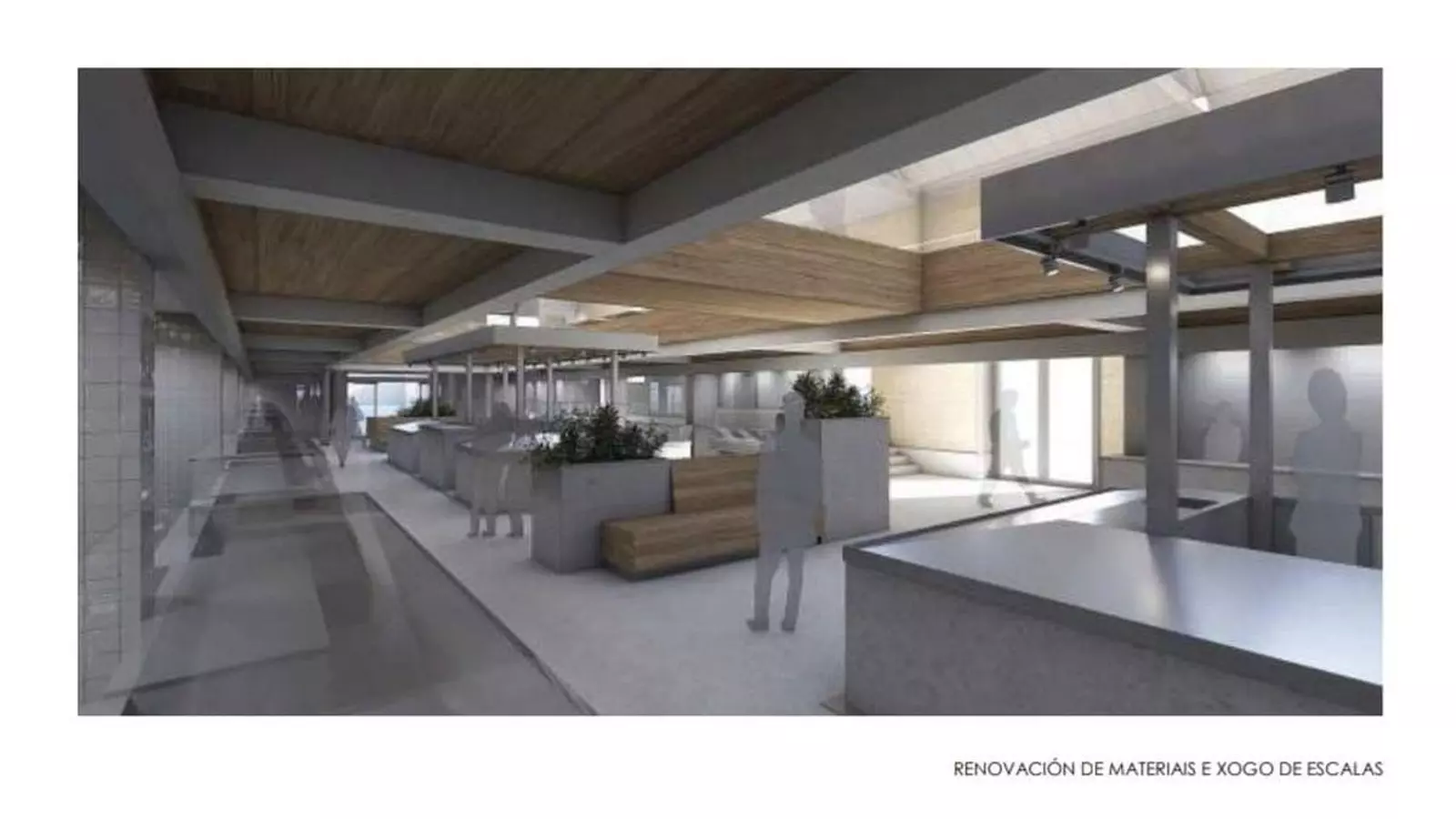 El nuevo diseño dividirá el espacio interior en dos áreas diferenciadas. En la planta baja se ubicarán los puestos de los praceiros, mientras que la segunda planta estará orientada a la gastronomía, la degustación y el ocio, con la instalación de negocios hosteleros y la organización de actividades lúdicas y culturales.