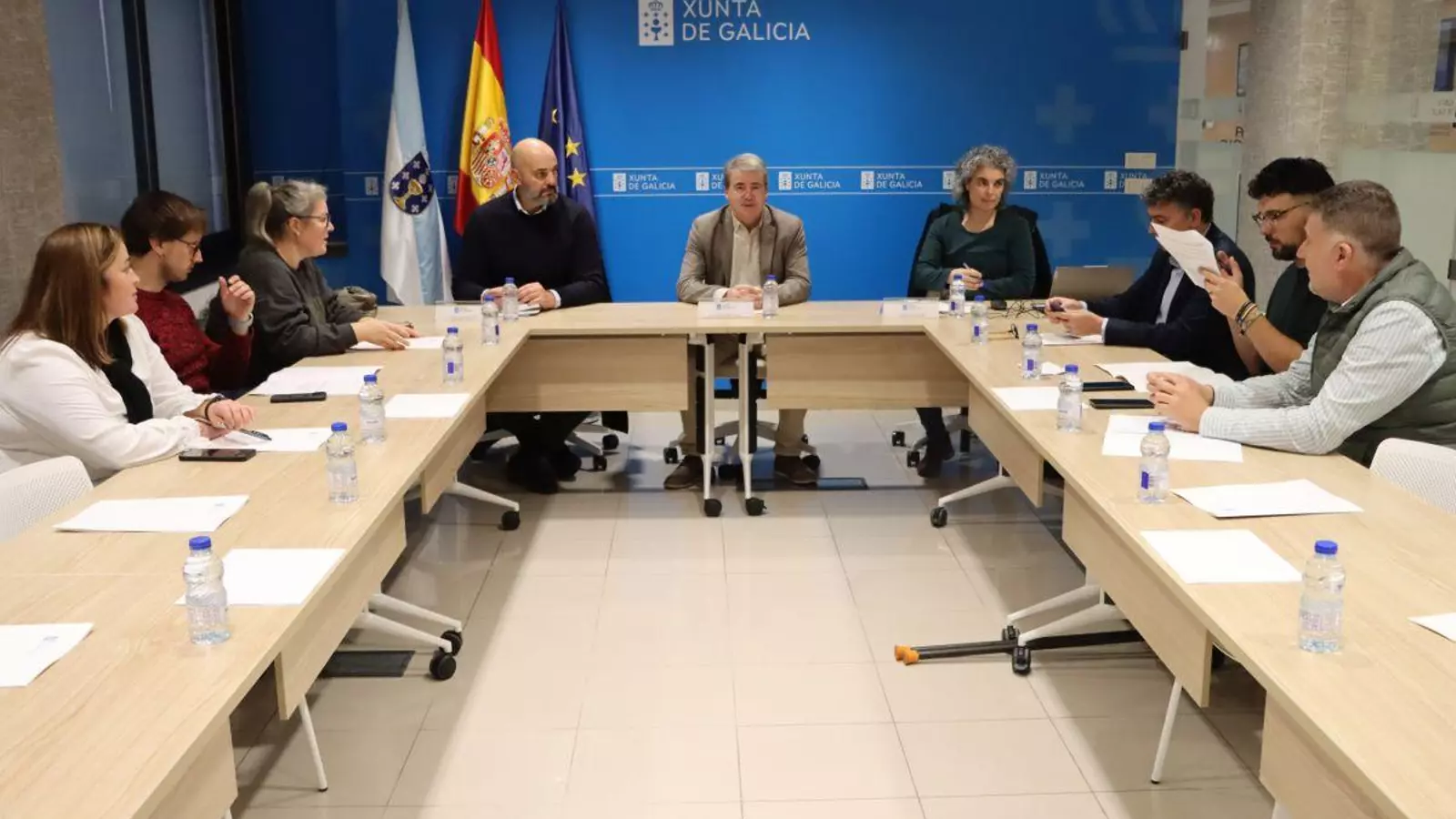 El delegado territorial de la Xunta en Ourense, Manuel Pardo, acompañado de técnicos de la Consellería del Medio Rural, mantuvo este martes un encuentro con alcaldes de la D.O. Ribeiro para informar de las medidas para combatir la flavescencia dorada.